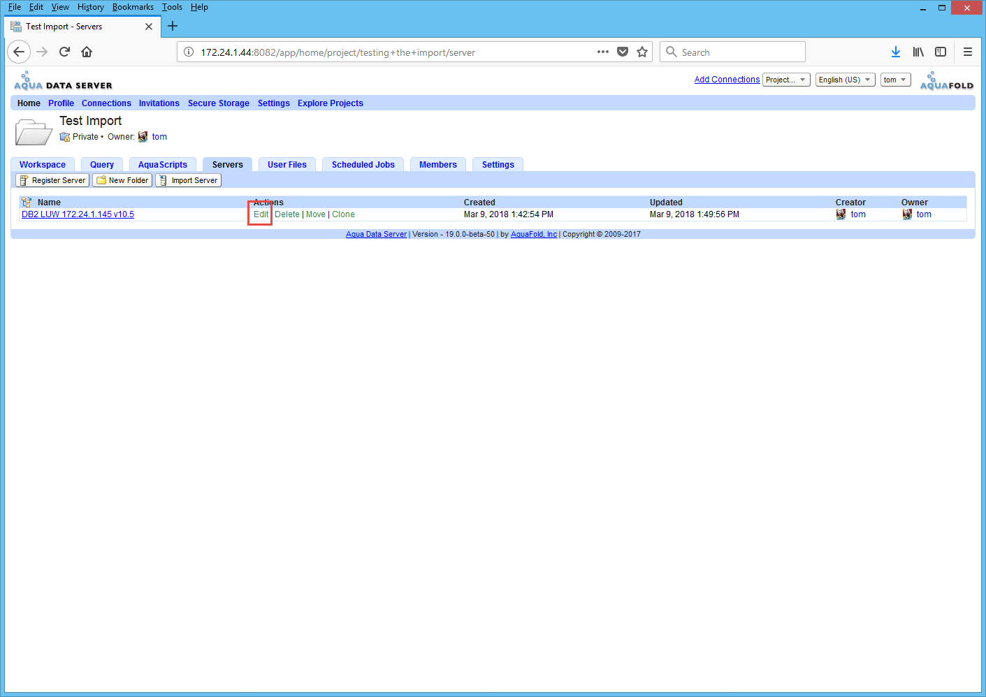 I use AQ Studio to maintain an inventory of our live servers. We have several hundred of these and the inventory of servers is in continuous flux with new builds & decomission's going on constantly. This project is used to generate daily reports against the existing server inventory. We purchased AQ Server a few years ago to allow us to run these scheduled projects and it was working before we upgraded from version 16.0. We now have AQ Studio v18.0 & AQ Server v18.5. The user account and password for virtually all of the registered servers in AQ Studio are the same. How do I import both into AQ Server each day so the report will work ?