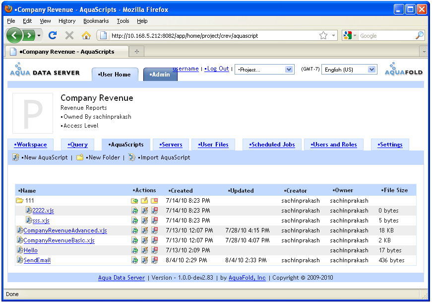 AquaScripts, similar to the way you would manage files in your OS. You can also view the contents of an AquaScript by clicking on its name. This will launch the AquaScript editor and give you the option of executing the script. If certain actions are not available, then you do not have the necessary project permissions.