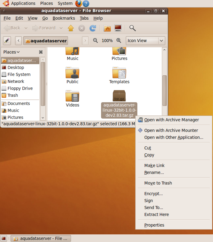 When I attempt to extract aquadataserver-linux-32bit-1.0.0-beta1.tar.gz (modified date: Sat 06 Nov 2010 02:41:20 PM PDT) I get the following errors