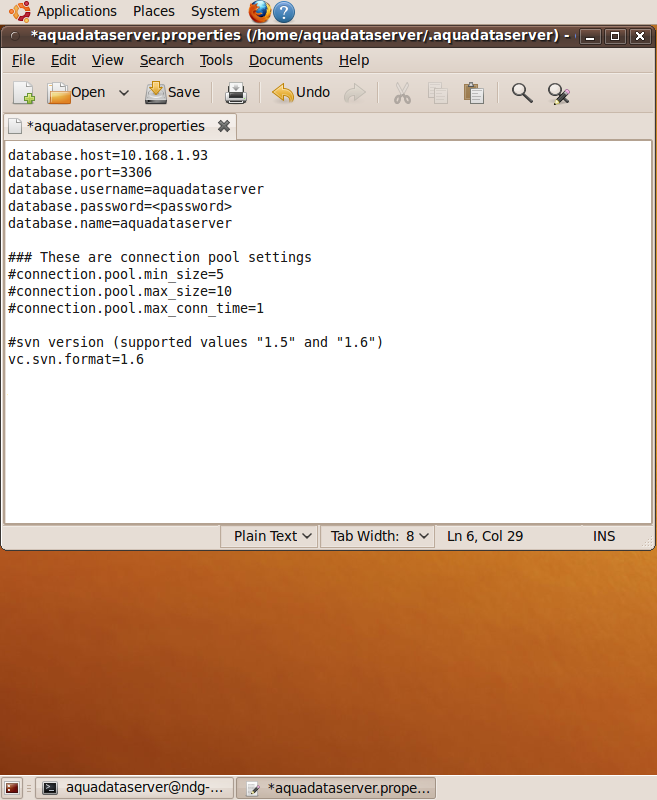 gedit /home/aquadataserver/.aquadataserver/aquadataserver.properties <press enter>