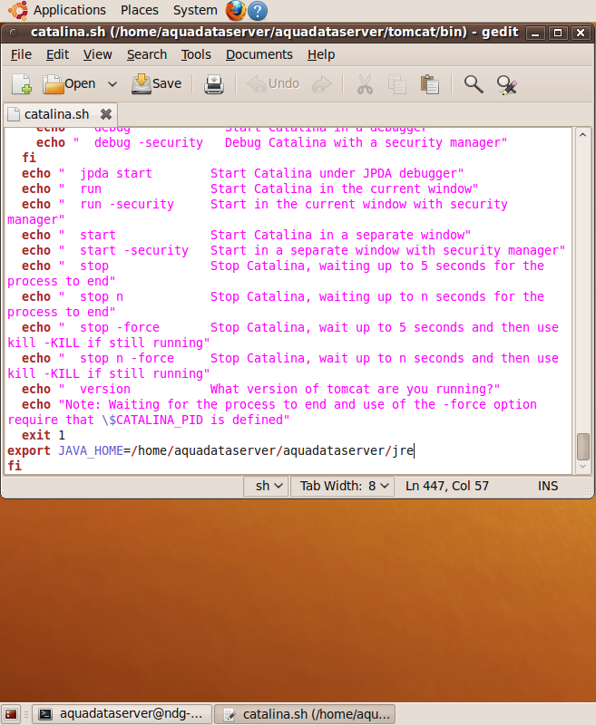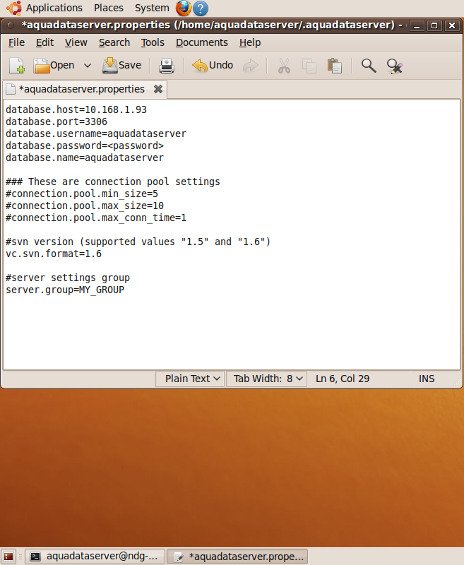 gedit /home/aquadataserver/.aquadataserver/aquadataserver.properties <press enter>