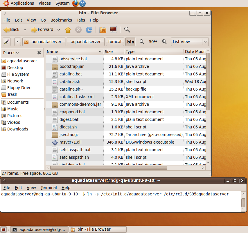 sudo ln -s /etc/init.d/aquadataserver /etc/rc2.d/S95aquadataserver <press enter>