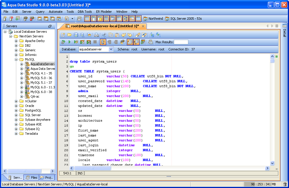 This step is for creating the appropriate schema within the aquadataserver MySQL database needed for running Aqua Data Server. Below, all of the steps assume you will be using Aqua Data Studio for creating the repository. If you do not have Aqua Data Studio, you can download a free evaluation version http://www.aquafold.com/downloads.html. If you are not using Aqua Data Studio, click here for Command-line MySQL Repository Creation Step Create Database.