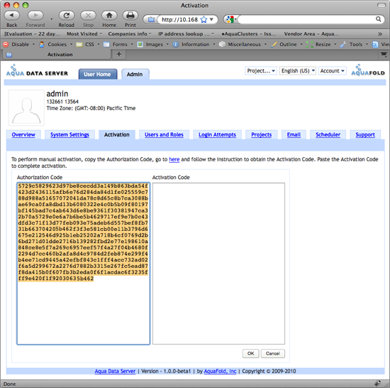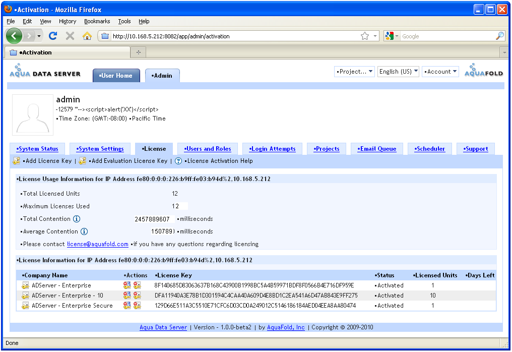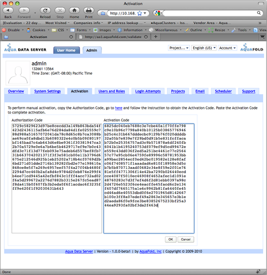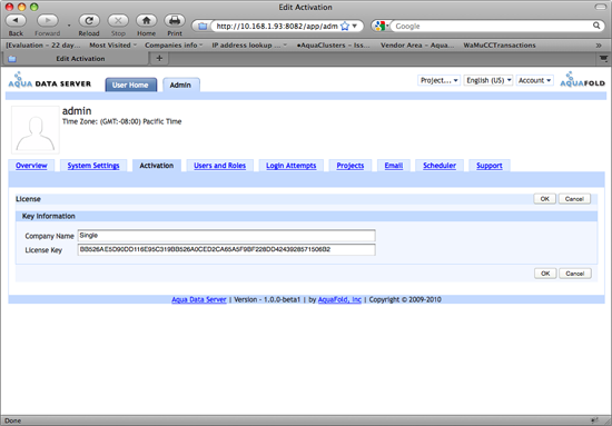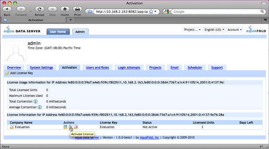 Adding a purchased license to Aqua Data Server is a two step process: adding the licensing key and activating it.
