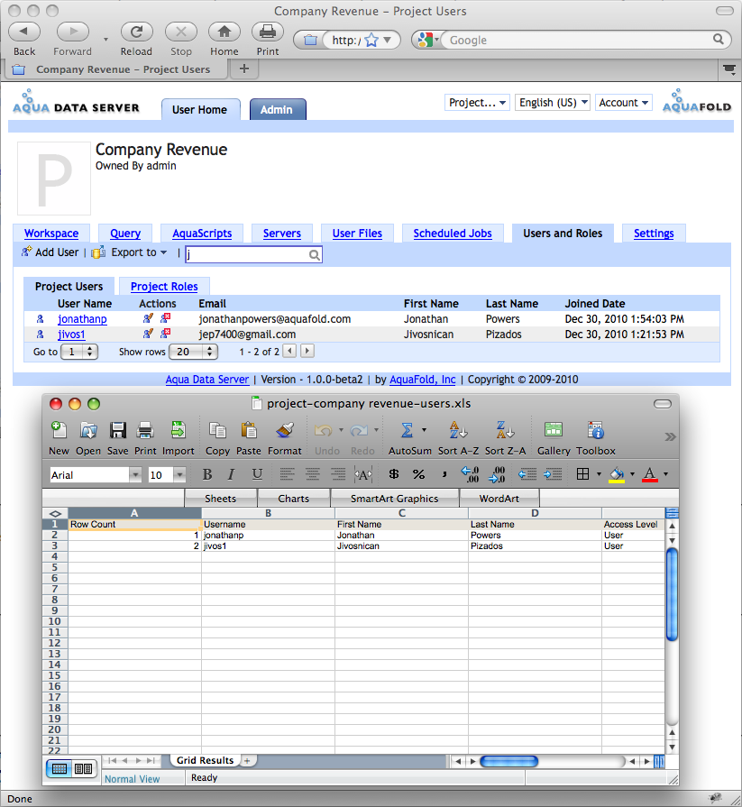 As the usage of Aqua Data Server increases and more and more users are created, you might want to quickly locate a specific user. The search textbox is designed to address this. After typing in your search text in the Action Bar and pressing enter, Aqua Data Server performs a case insensitive, OR search across the user name, email address, first name and last name fields and returns all matching records. For example, lets say you were searching for the text "hon". Aqua Data Server would perform the following search: user.name like %hon% OR user.first_name like %hon% OR user.last_name like %hon% OR user.email like %hon% ==> this would return names like "Anthony" and "Jonathon".