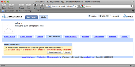 Once you install Aqua Data Server and go to the System Users & Roles tab, you will notice 2 pre-configured System Roles. These are "Administrator" and "Project Owner".