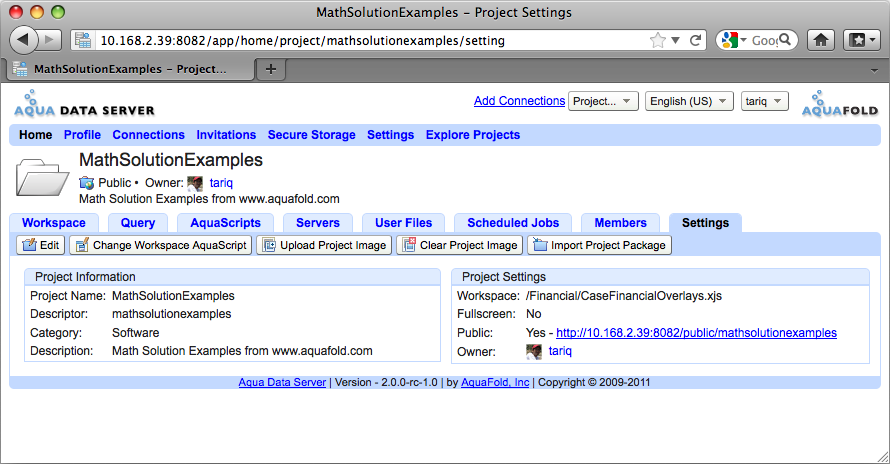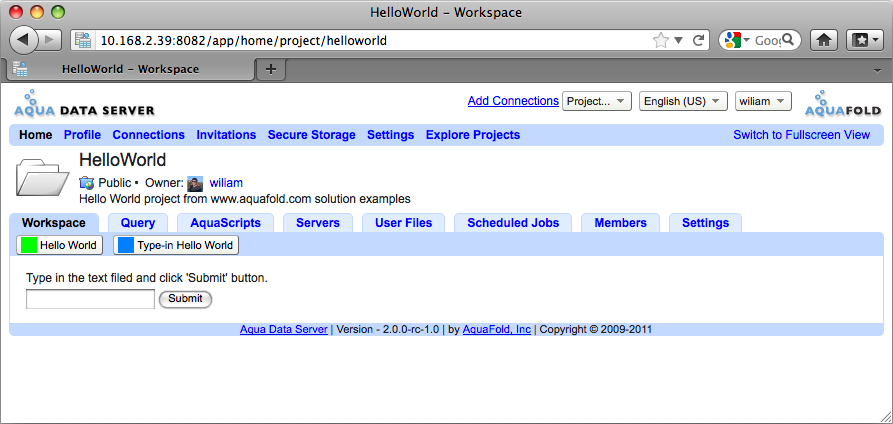 Aqua Data Server projects can be set for public access where visitors can view the project workspace and run AquaScripts accessible through the GUI elements on the workspace. An example of such a project is the “MAC Finder” project built as an illustration of Aqua Data Server capabilities.