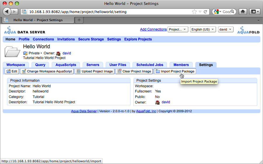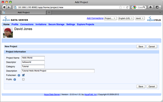 1. Log in to your Aqua Data Server account and create a new project. You will import files into this project from the “HelloWorld” project created in Aqua Data Studio, in a later step.