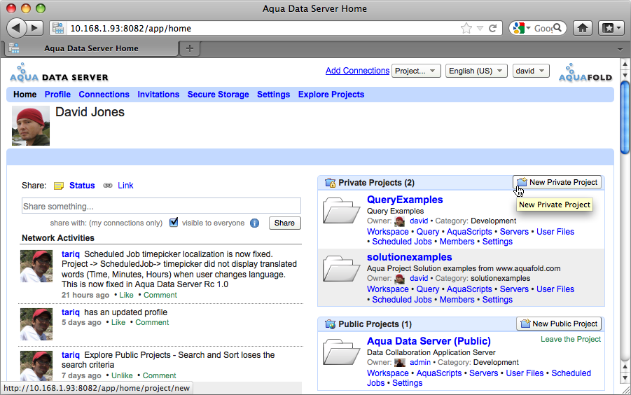 2. In the “My Projects” tab of Aqua Data Server browser window, click on the “New Project” button. If you do not see the "New Project" button, please ask your system administrator to grant you the "Create Project" system permission.