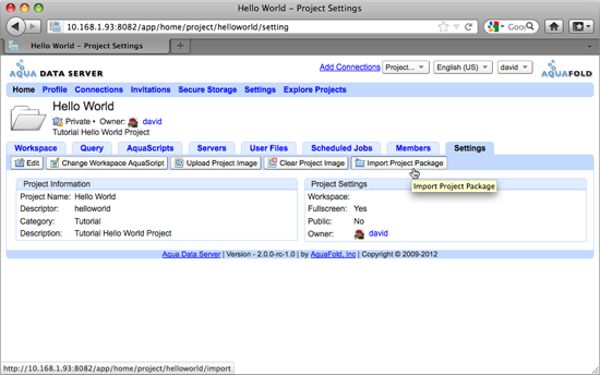 Click on the Settings tab and click the “Import Project Package” button in the action bar.