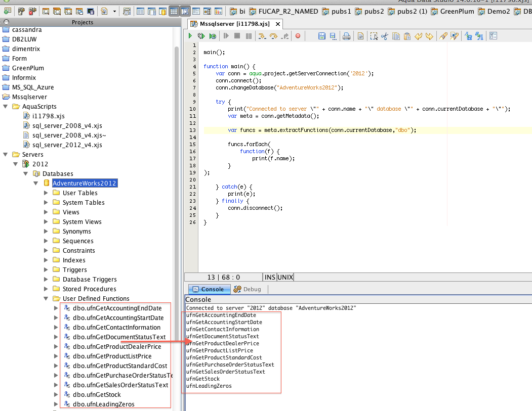 var conn = aqua.project.getServerConnection('MY_MSSQL_SERVER');