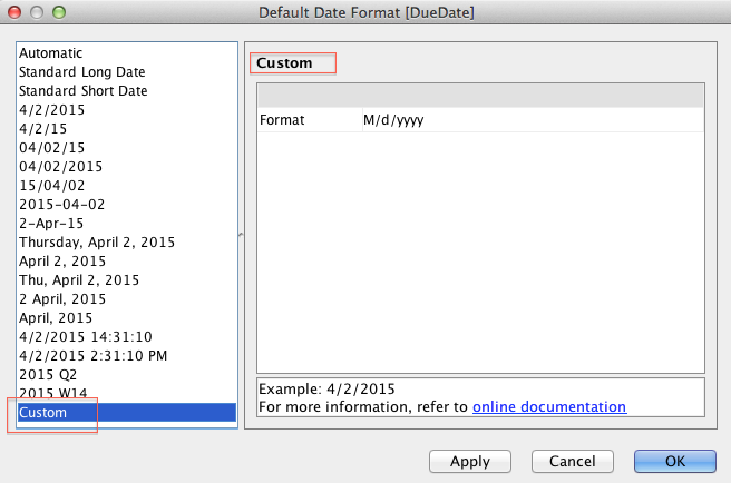 Yes, I'm aware of that, what I was looking for was the ability to define a set of frequently used Custom Date formats for re-use-- for instance I use "yyyy-MM-dd" and "yyyy-MM-dd HH:mm" consistently, in addition to being able to set a default for any new usages-- like if I create a new VA Workbook. Currently it requires me to go into the newly created Workbook and for each of my date columns choose Default -> Date Format -> Custom and type in "yyyy-MM-dd HH:mm".