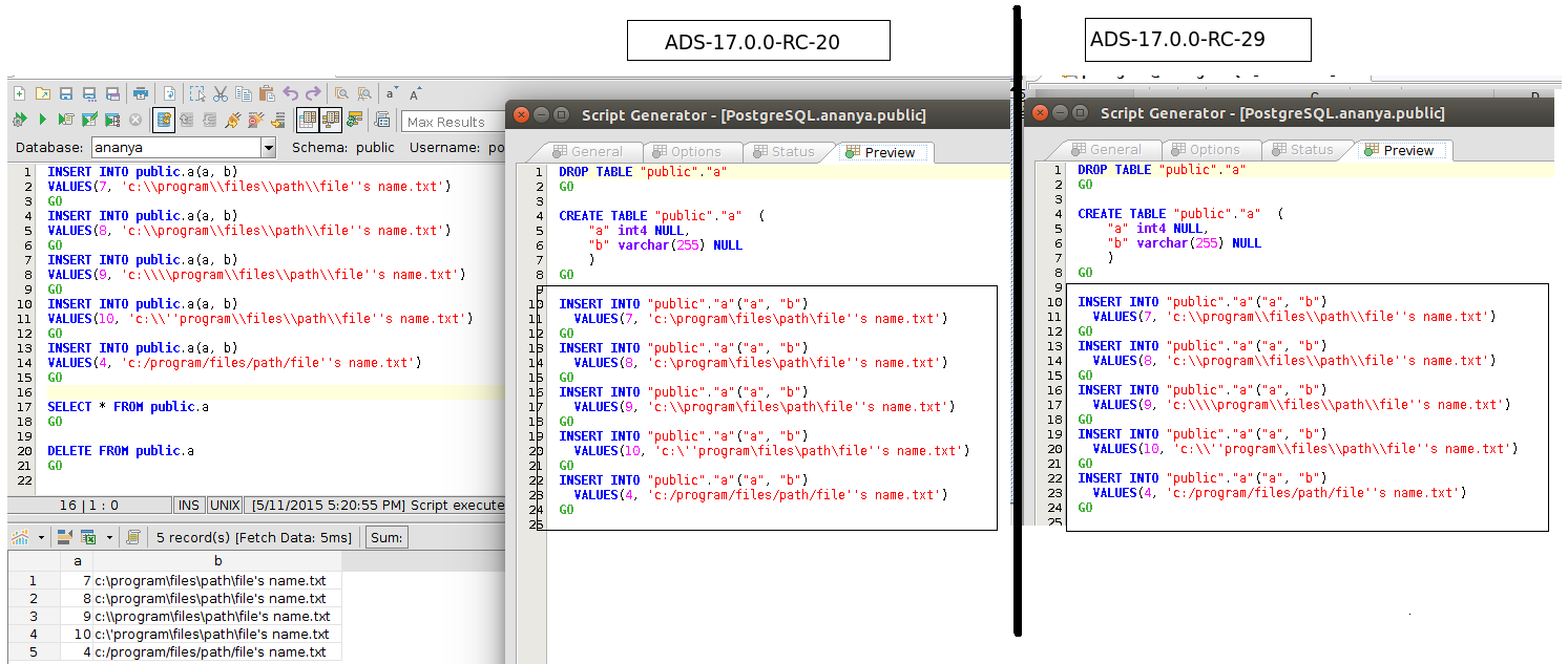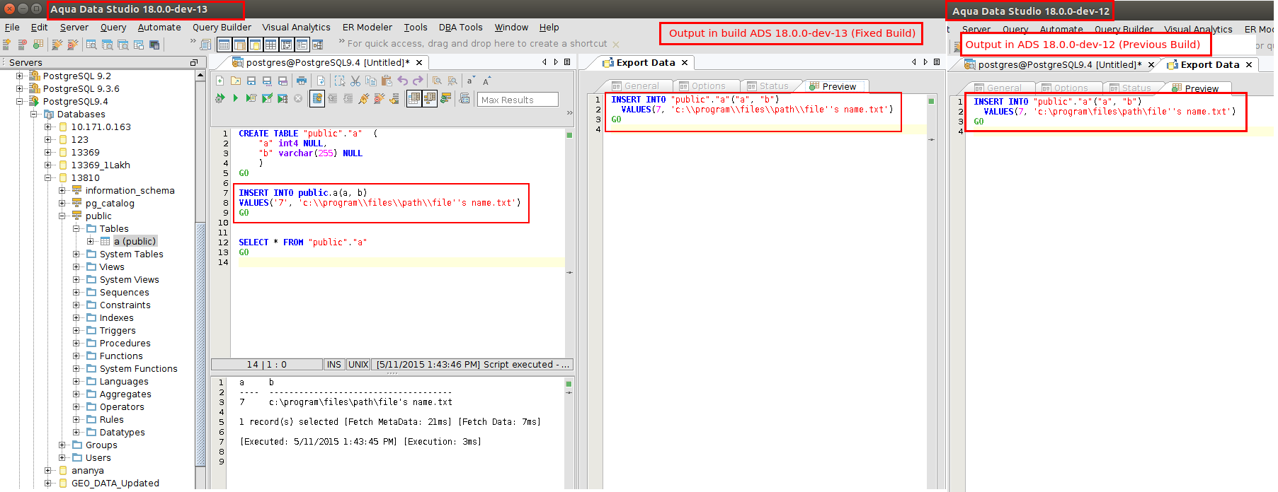Works correctly in customers PostgreSQL version for Tools -> Export with FORMAT = INSERT statements.