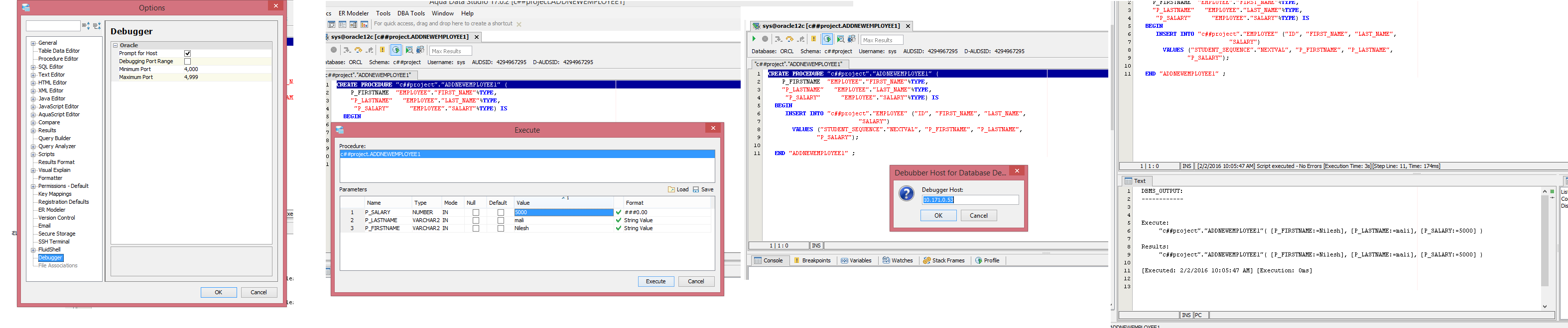 "Debugger Host for Database Debugging" window is not launched after clicking on execute button.