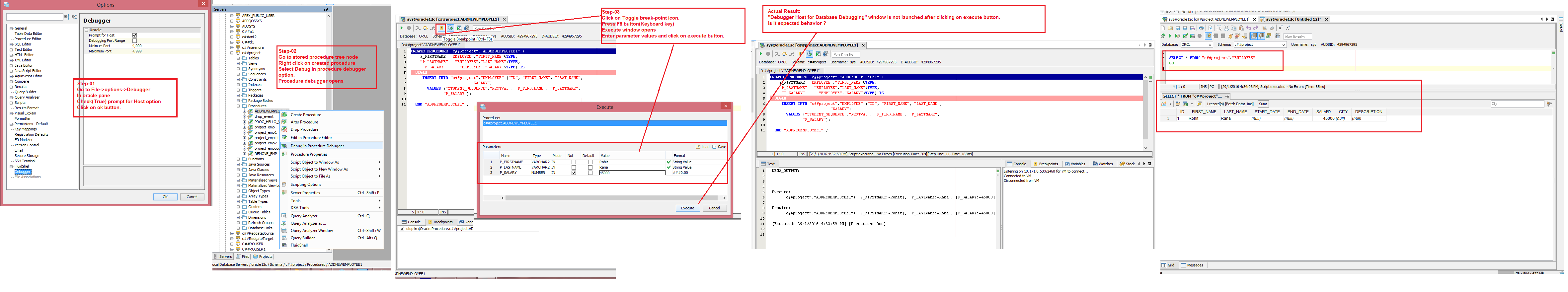 Select Debug in procedure debugger option.
