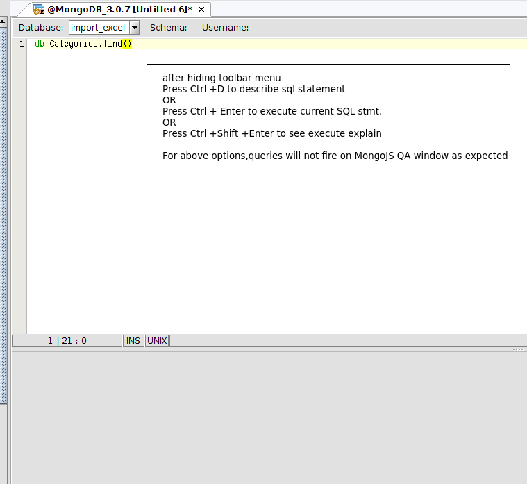 For MongoJS, the Parse, Execute Current, and Execute Edit buttons are not available in the toolbar. The code was using isShowing() to determine if the button was available. When the toolbar is hidden, isShowing() is always false.