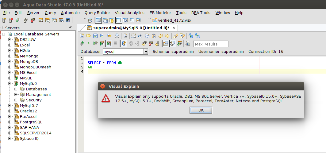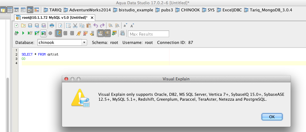 Describe Error: Failed to execute EXPLAIN plan: You have an error in your SQL syntax; check the manual that corresponds to your MySQL server version for the right syntax to use near 'SELECT * FROM album' at line 1