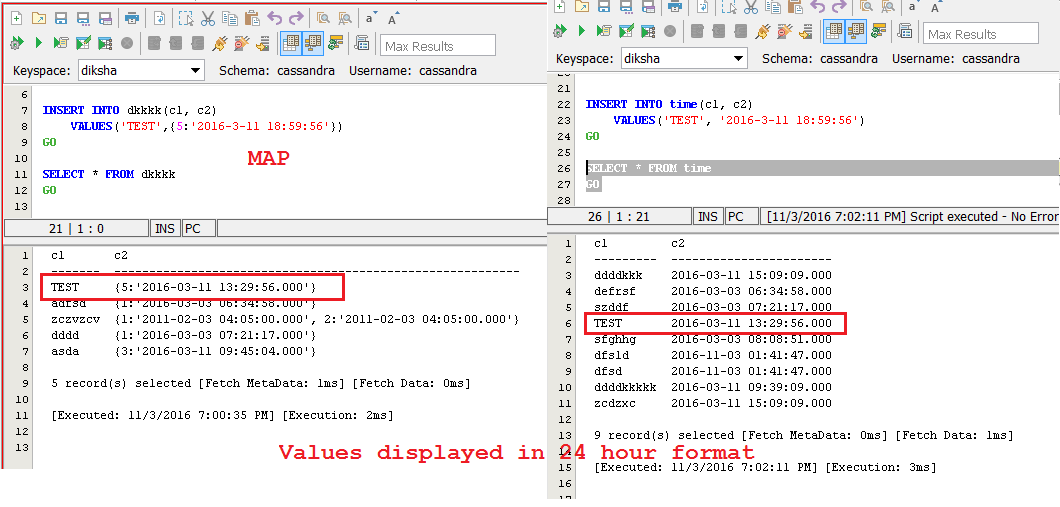 Timestamp values will be displayed using the UTC time zone if date format is [None] for Cassandra.