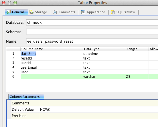 @jason: In ADS v17 now() is not quoted for default value in mysql when date type datatypes is used. See attached screenshot. I will check with the Developer on the difference between now() and now(6)