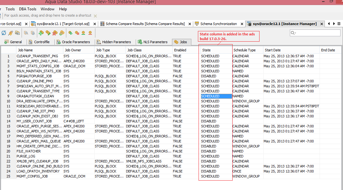 The [State] column has been added to the instance manager -> Jobs Tab -> Job row detail after the Enabled column.