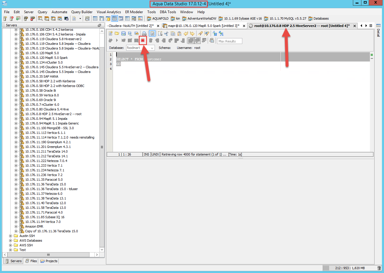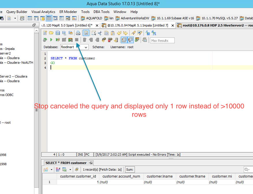 Hi QA Team, Please test that queries for Hortonworks get cancelled when pressing the Stop button on the tool bar. See attached. Thanks, Tom