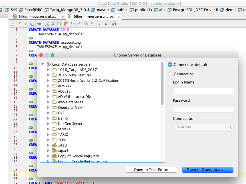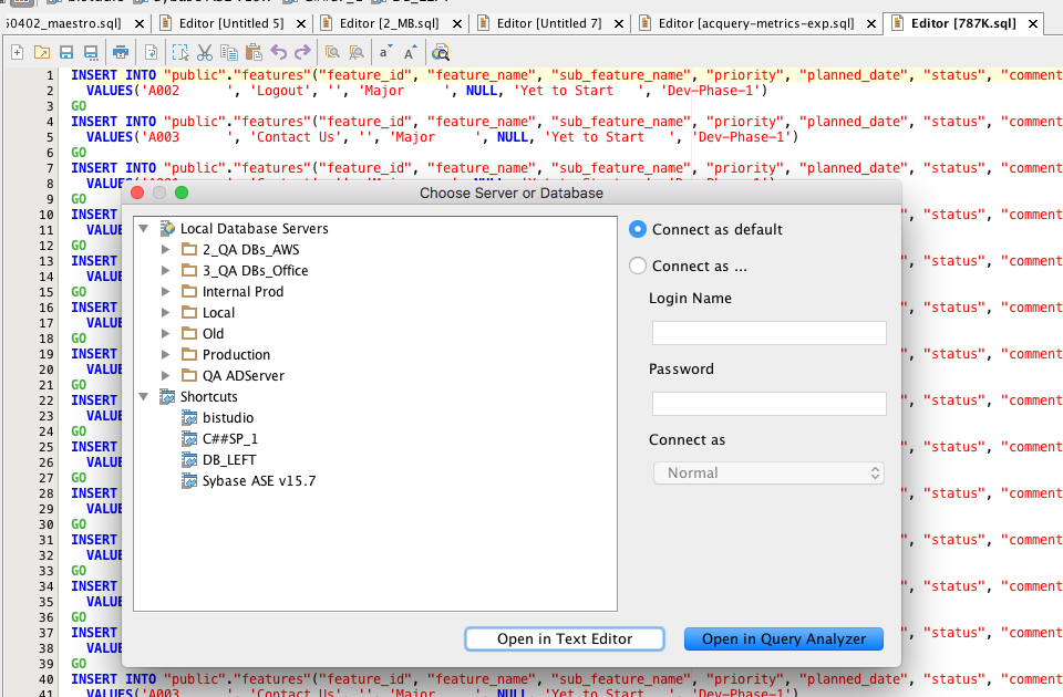 - You'll see the "Choose Server or Database" dialog appear. Click on the "Open in Text Editor" button.