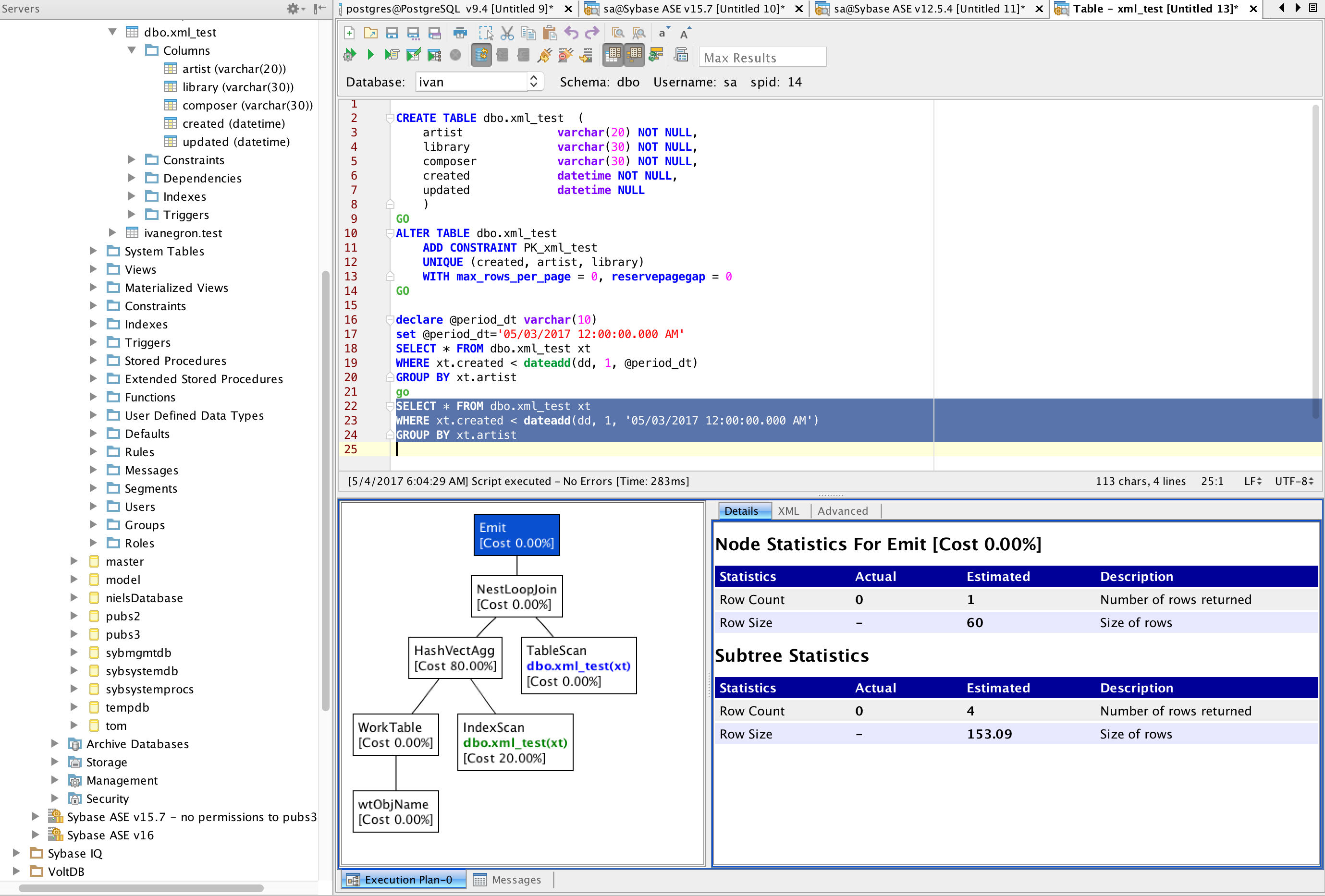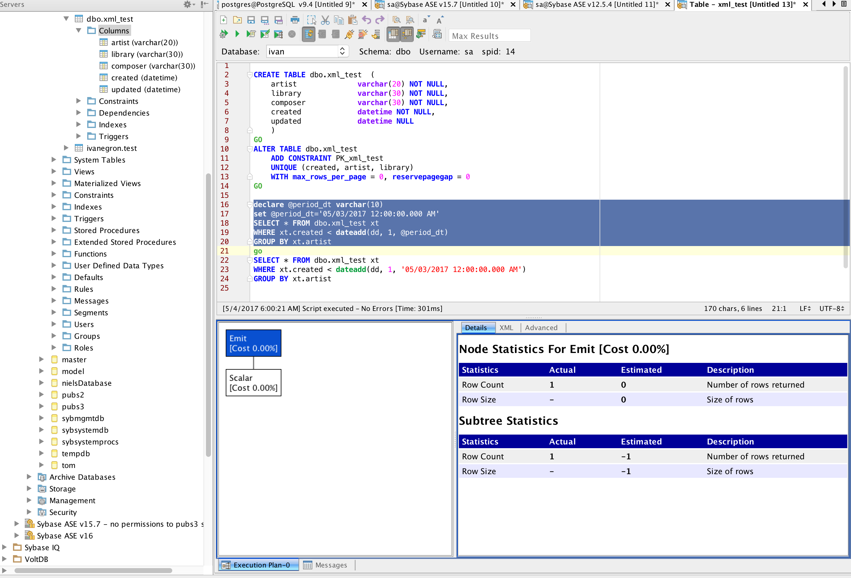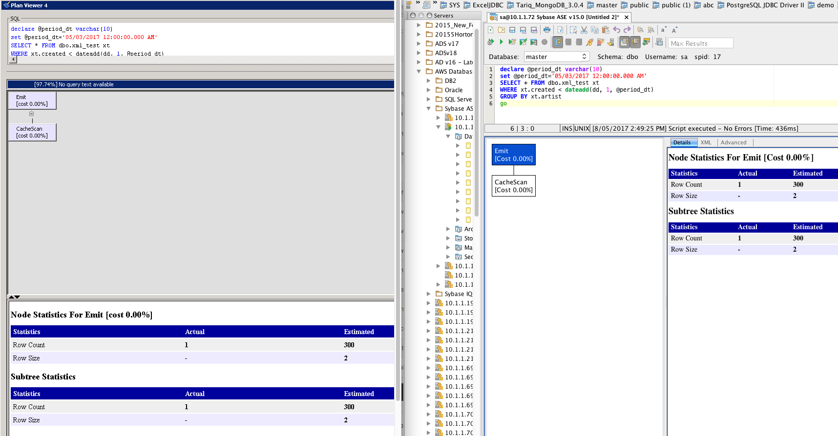 Connection info: Sybase ASE 15.7; 10.1.1.92. Queries: