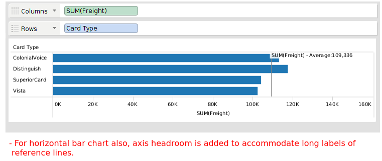 - For horizontal bar chart also, axis headroom is added to accommodate long labels of reference lines.
