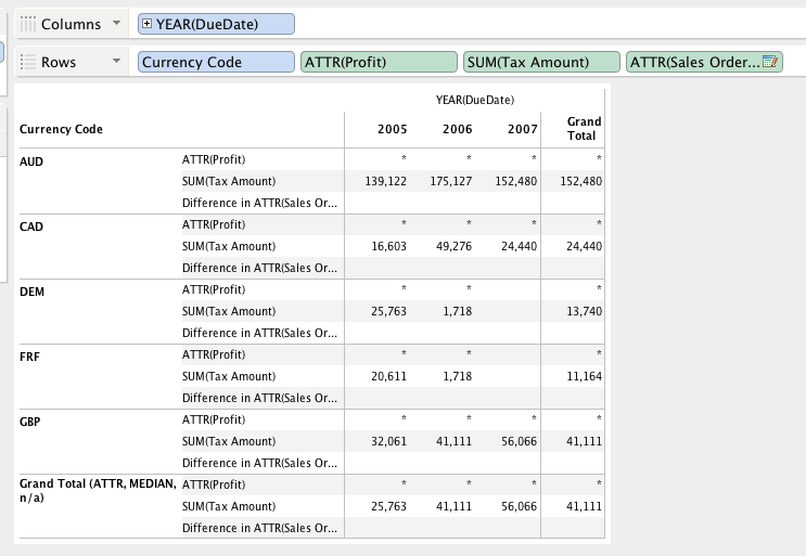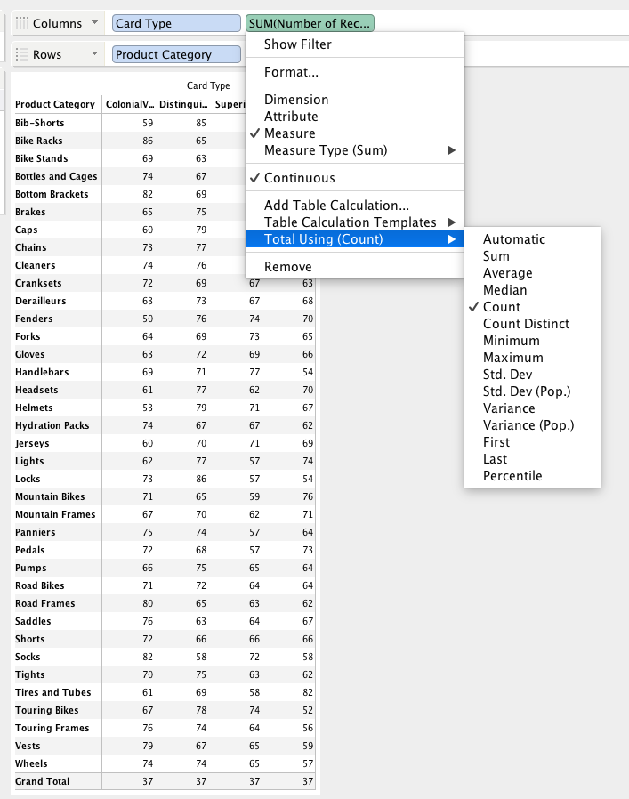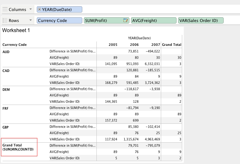 Grand Total (COUNT, SUM, COUNTD)