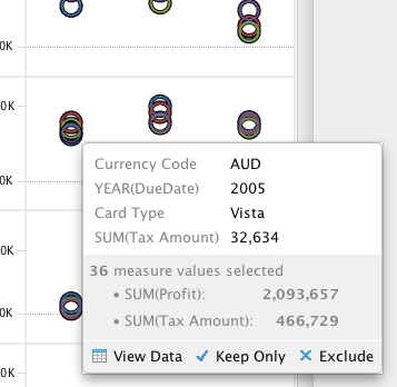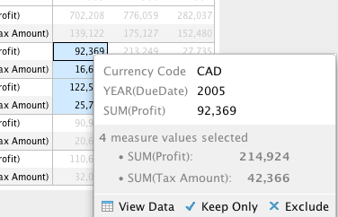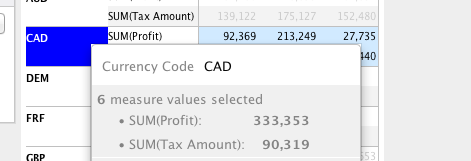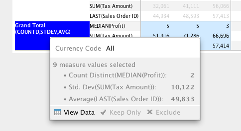 - For multiple measure values, Comma separated list is displayed. eg. (AVG, MAX, COUNT)
