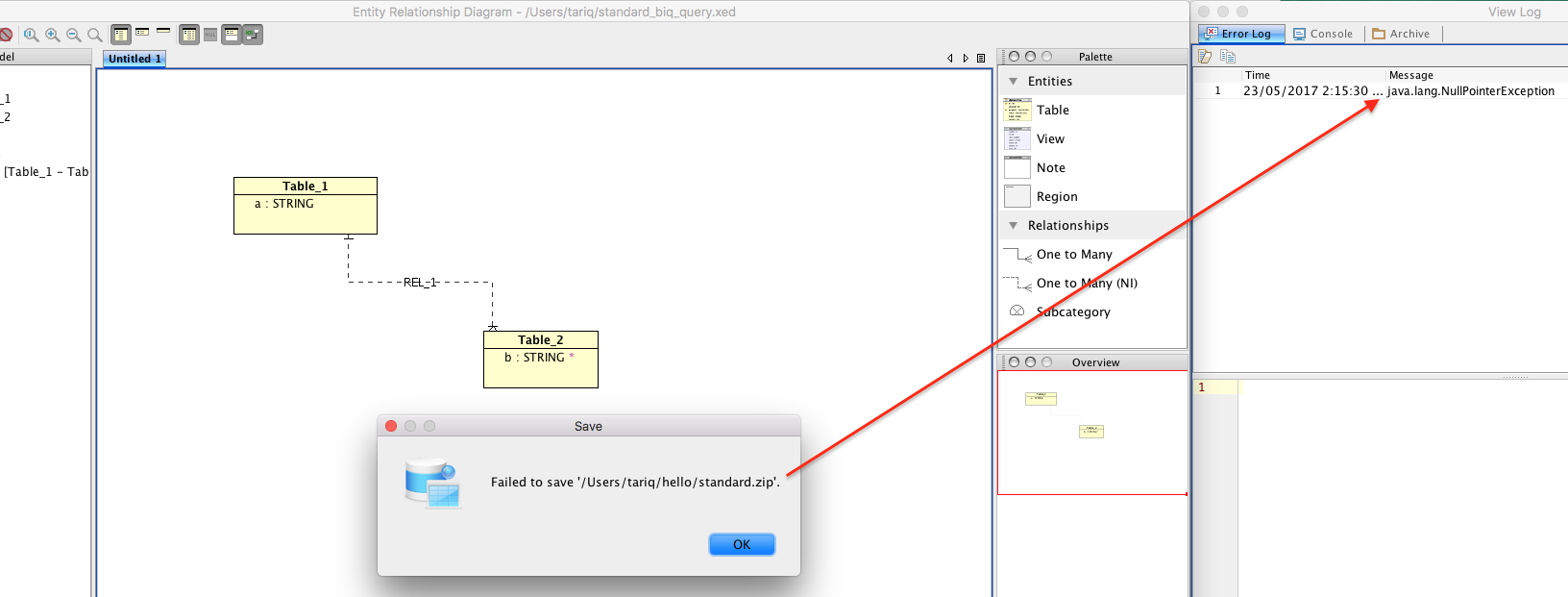 5. NPE in View Log is shown below
