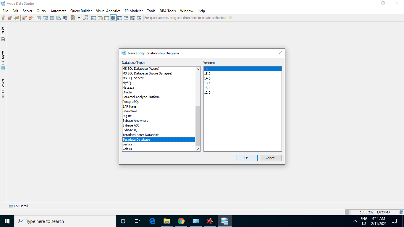 ER Modeler -> New -> 'New Entity Relationship Diagram' window