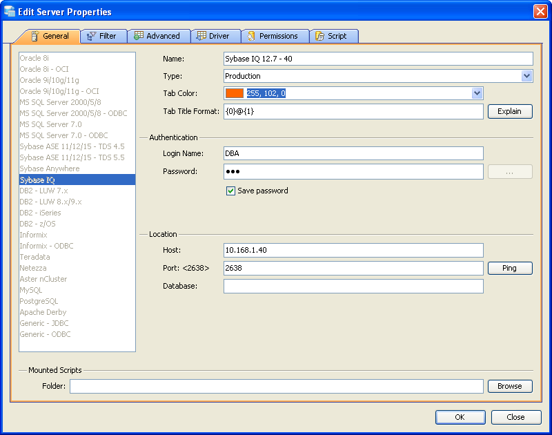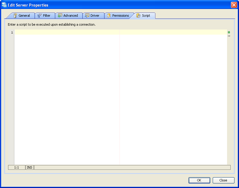 Edit Scripts in Server Properties in Aqua Data Studio: