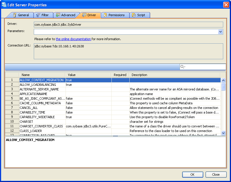 Edit the Drivers Properties to use Driver Parameters in Aqua Data Studio: