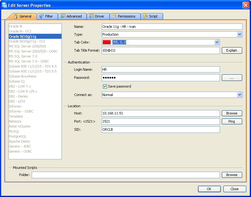 Edit Scripts in Server Properties in Aqua Data Studio:
