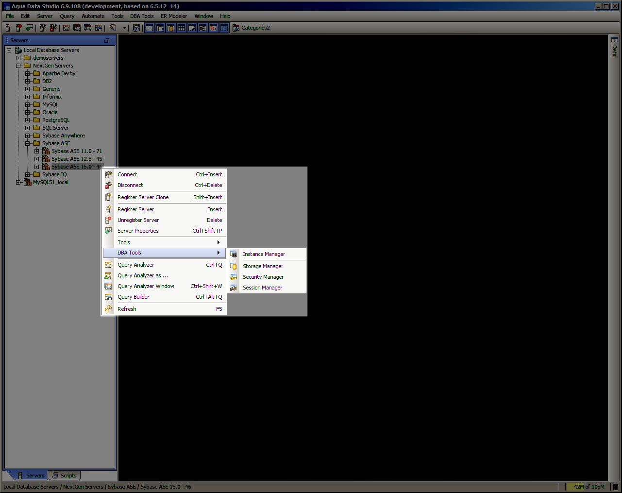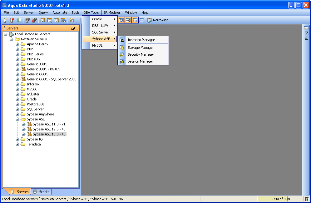 Sybase Database Administration (DBA) Tools - The Sybase Database Administration (DBA) Tools provide users with the tools to administer, manage and monitor all aspects of a Sybase database. The tools may be accessed from the application DBA Tools menu or from the schema browsers context sensitive popup menu. The following is a list of tools provided with a description of each tools functionality.