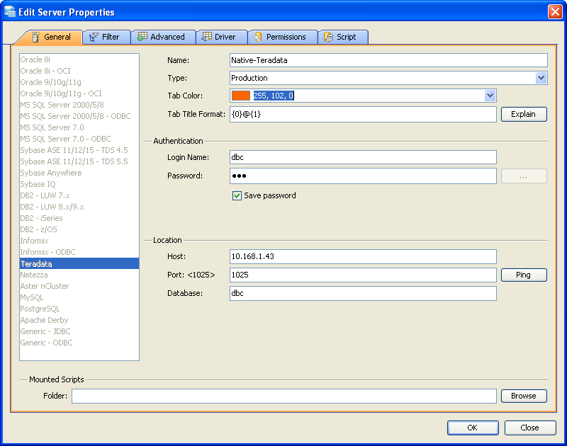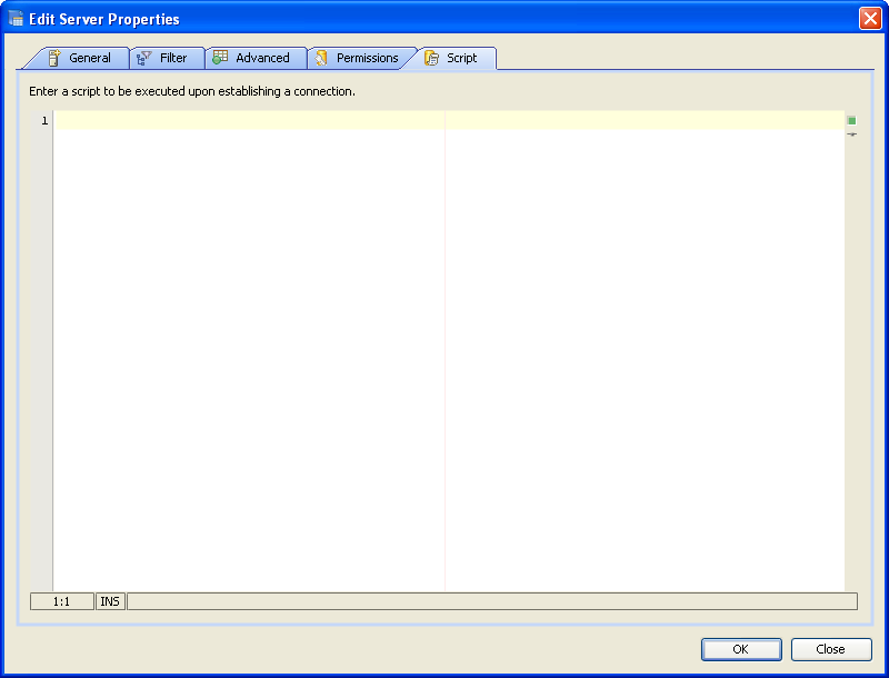 Edit Scripts in Server Properties in Aqua Data Studio: