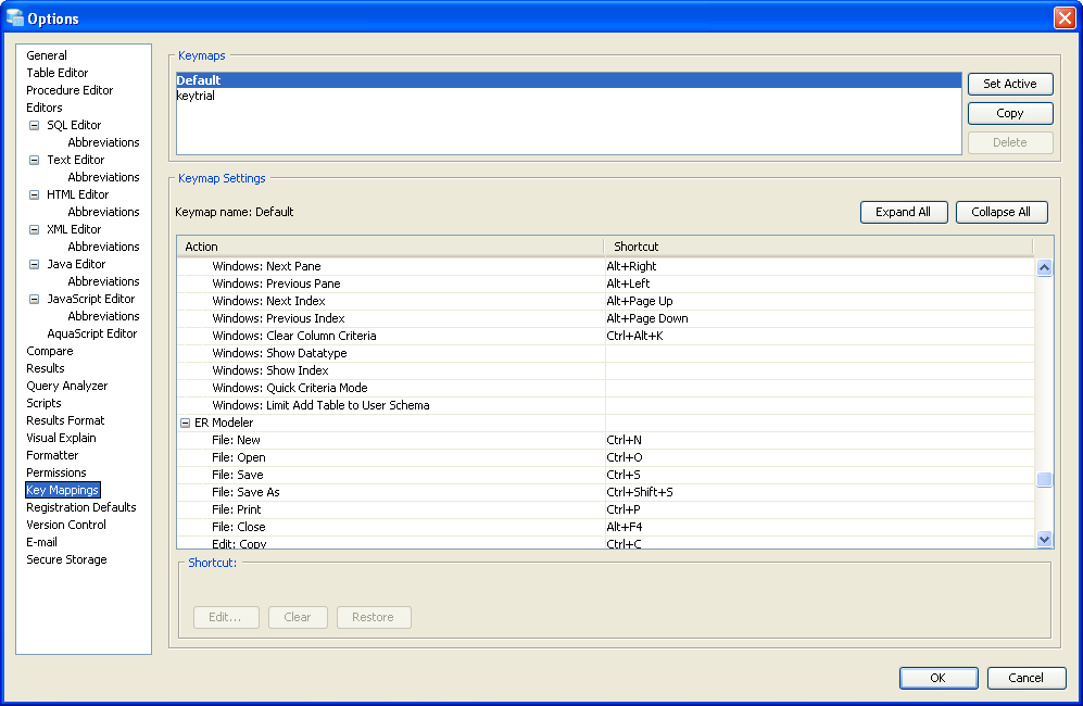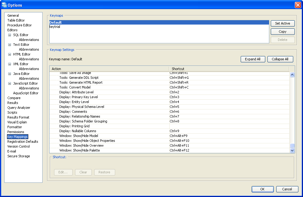 Key Mapping Options Key Mappings - The Key Mapping section allows you to configure new key mapping profiles with new key bindings. This allows you to configure any keystroke to any action.