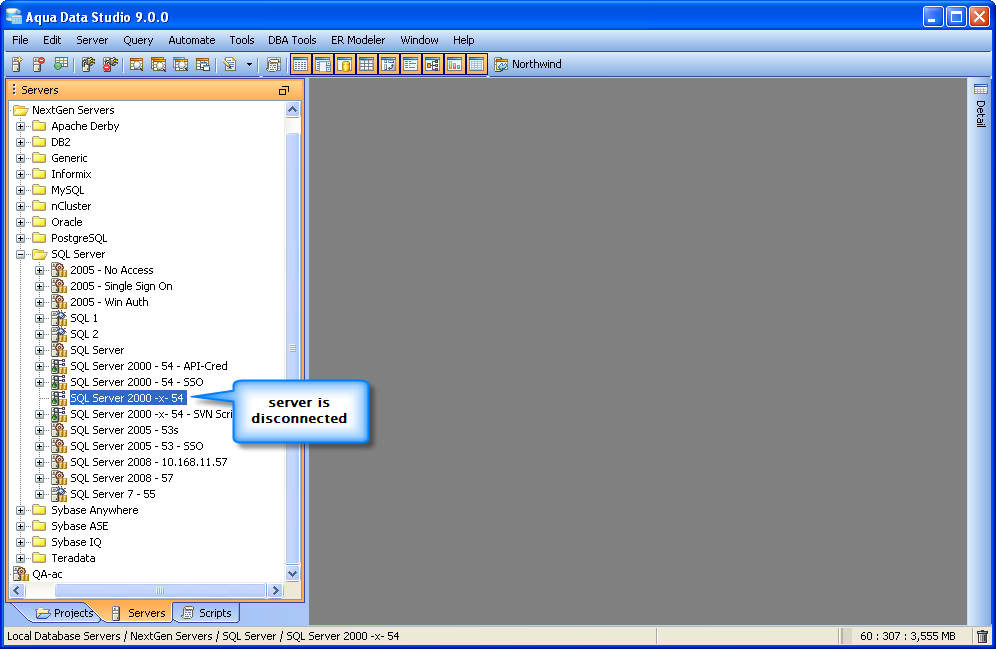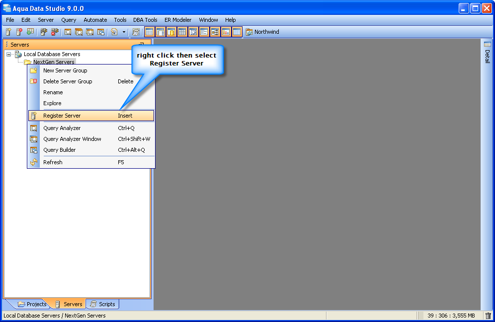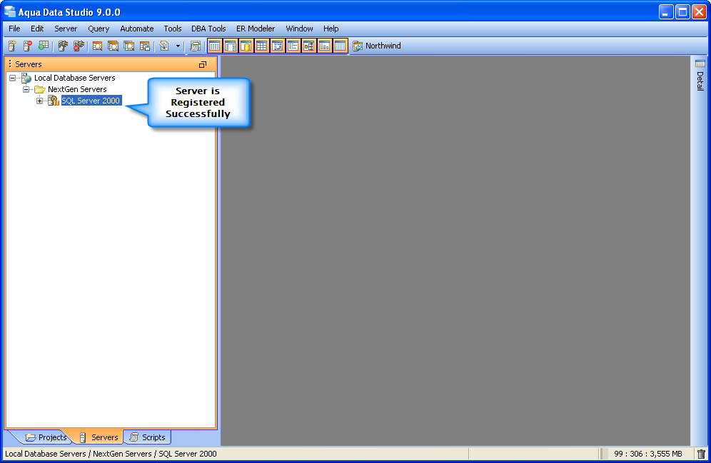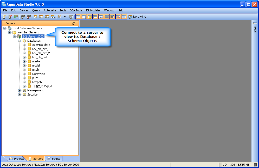 Once you have installed Aqua Data Studio you will need to register your servers before you get started. Server Registrations are created, edited, grouped, connected to and disconnected from most easily through the Schema Browser.