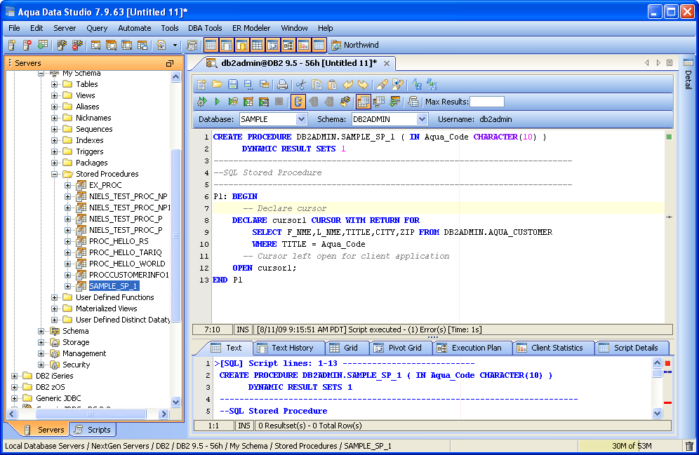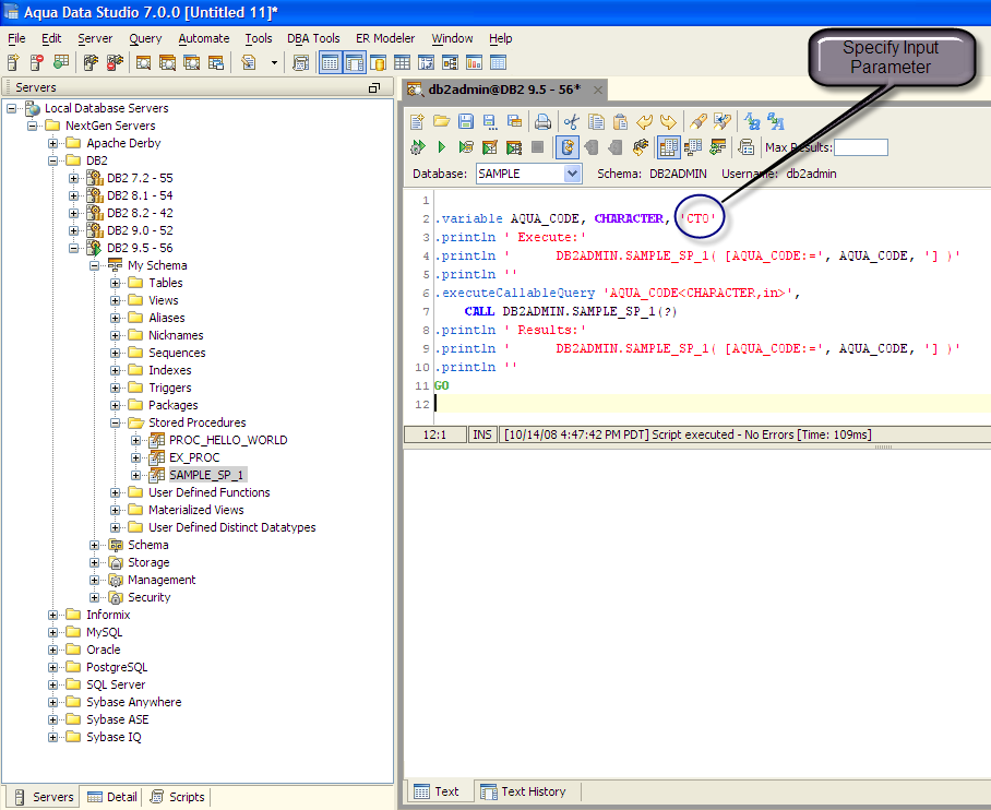 Creating and Executing a Sample Stored Procedure in Aqua Data Studio (DB2 UDB)