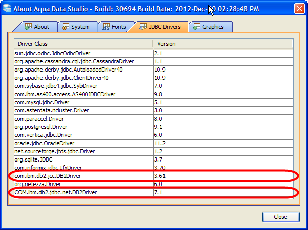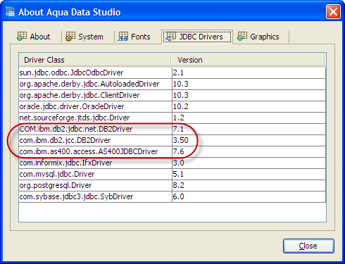 To update the Aqua Data Studio JDBC drivers for DB2 8.1 you need to overwrite the Aqua Data Studio db2jcc.jar and db2jcc_license_cu.jar files. Below is a listing of the Aqua Data Studio library directory [ADS_INSTALL]\lib\drivers\ ...
