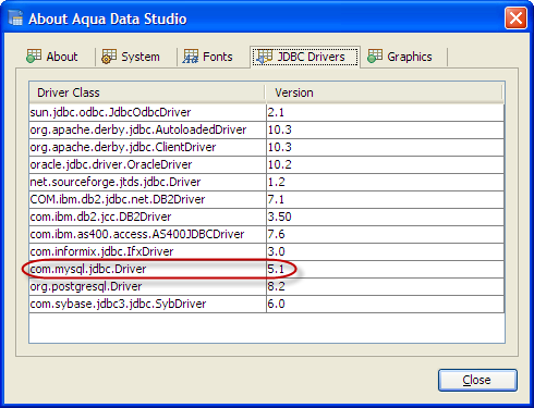 The MySQL JDBC (v5.1) drivers included with Aqua Data Studio work across all versions of MySQL from 3.x to 6.x. MySQL server releases are very frequent, and may sometimes require updating the JDBC driver.