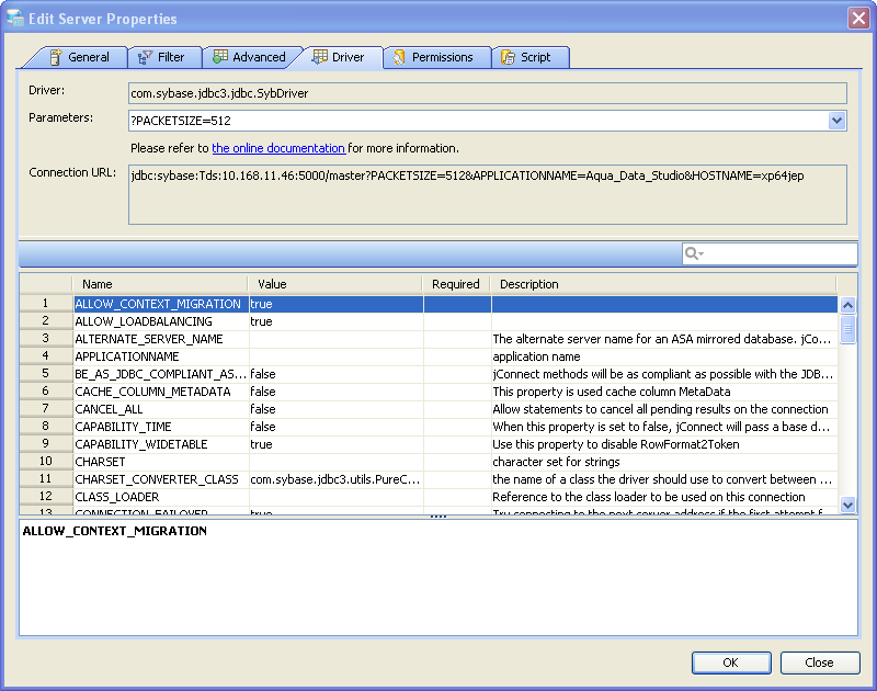 Edit the Drivers Properties to use Driver Parameters in Aqua Data Studio: