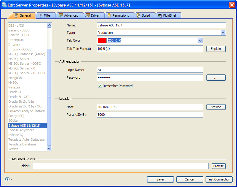 Edit Scripts in Server Properties in Aqua Data Studio: