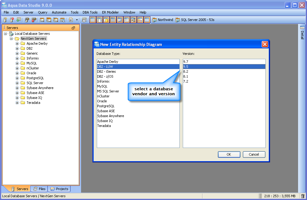 If a database were to be imported, the beginning steps (steps 1 - step 10) above would be skipped as all of the table properties, datatypes and columns would be generated during the database import. If a database were to be right clicked in the schema browser, there would be no need to manually select database and version in step 2 above.