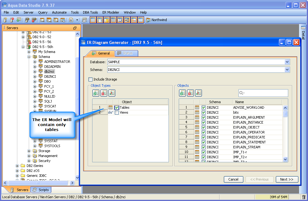 Generating an ER Model through the Schema Browser