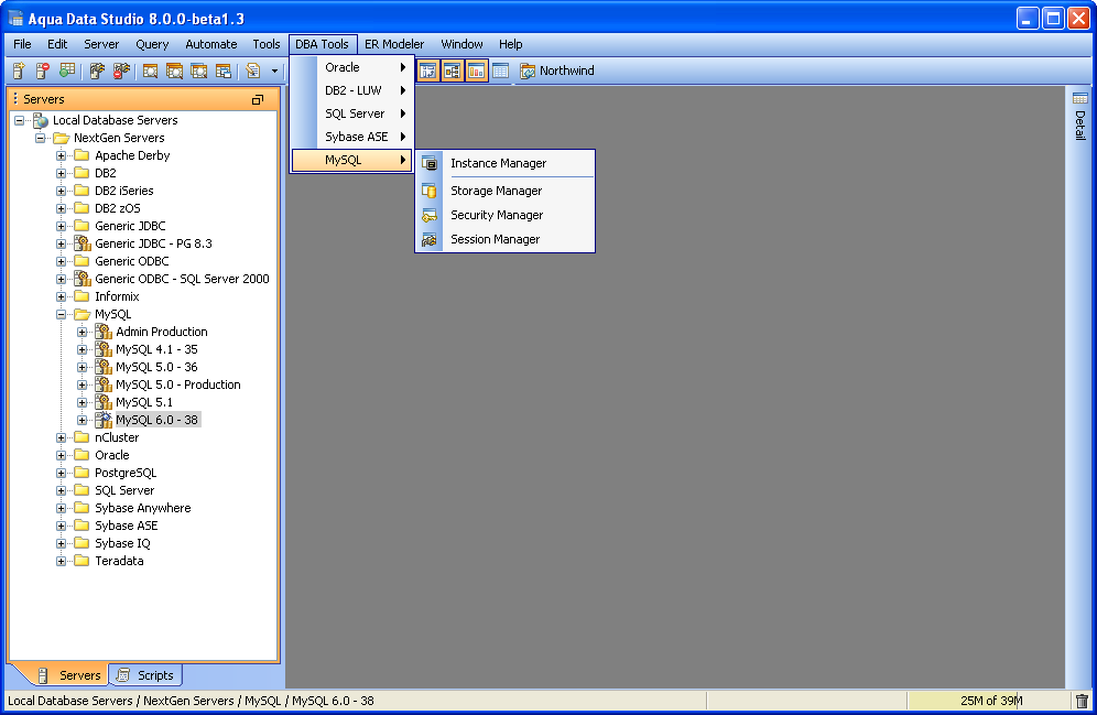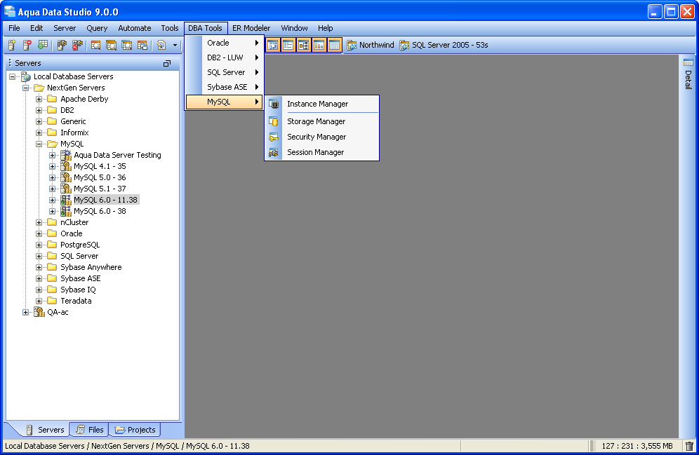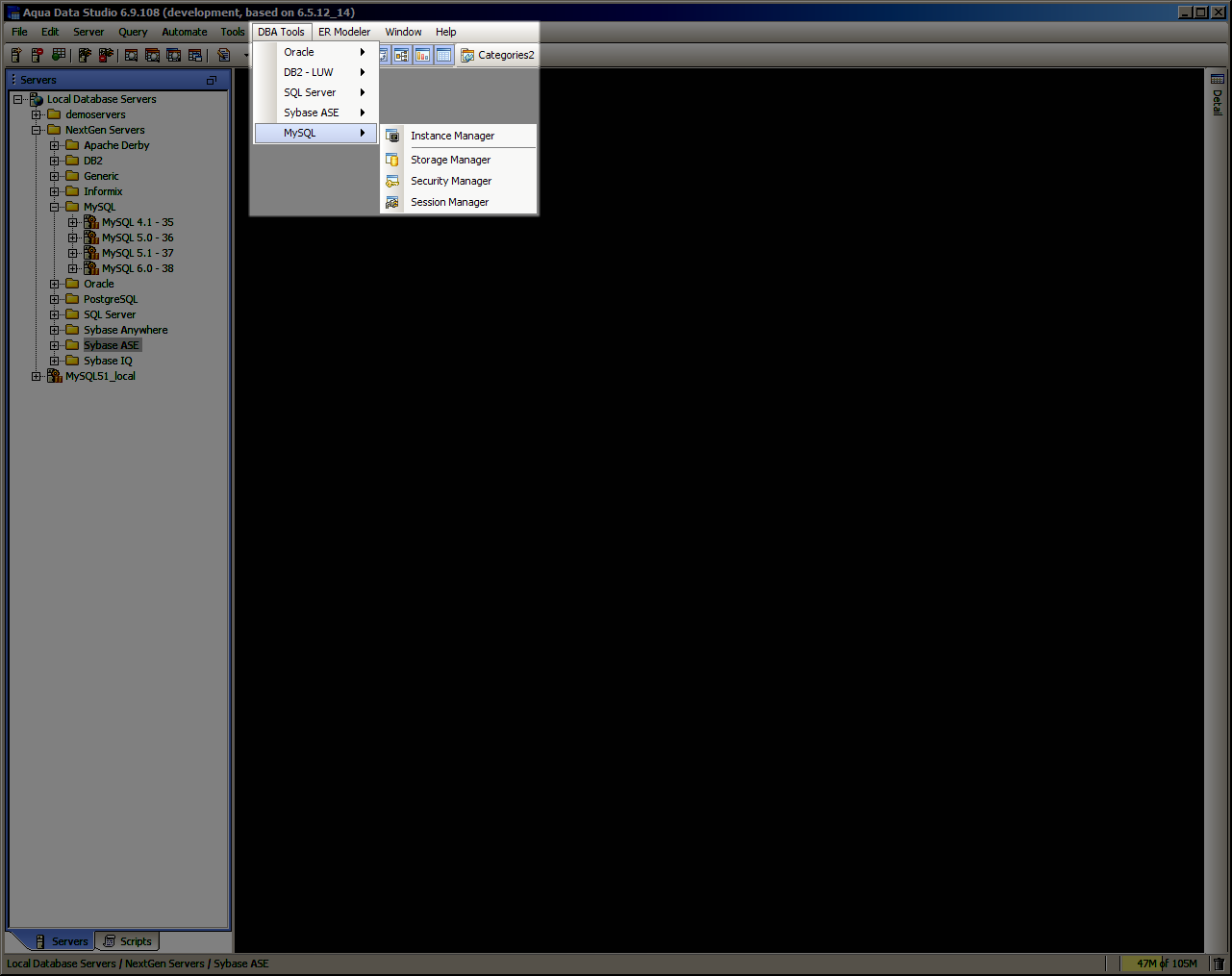 MySQL Database Administration (DBA) Tools - The MySQL Database Administration (DBA) Tools provide users with the tools to administer, manage and monitor all aspects of a MySQL database. The tools may be accessed from the application DBA Tools menu or from the schema browsers context sensitive popup menu. The following is a list of tools provided with a description of each tools functionality.