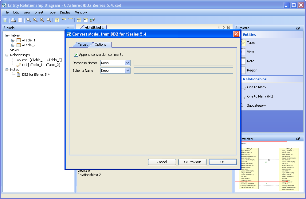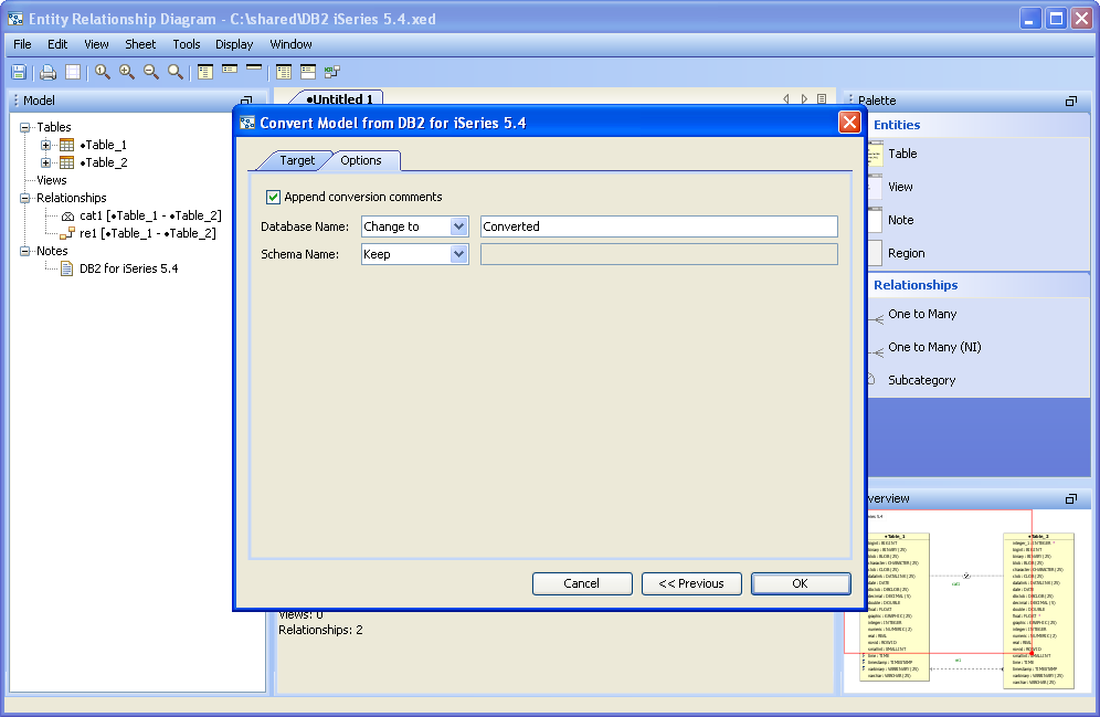 Converting an ER Model from one database to another