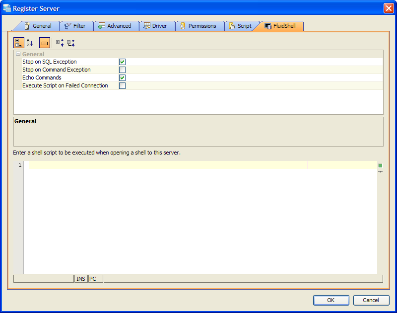Edit Shell Scripts in Server Properties in Aqua Data Studio: