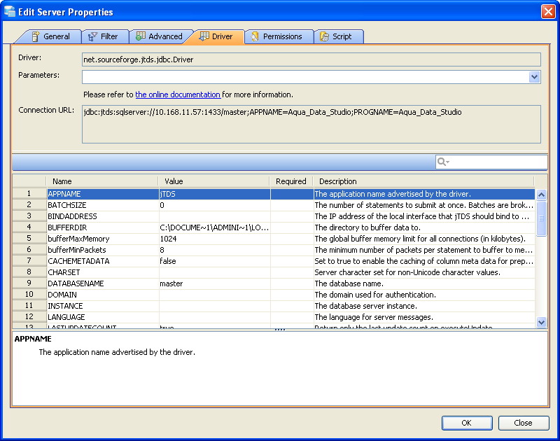Edit the Drivers Properties to use Driver Parameters in Aqua Data Studio: